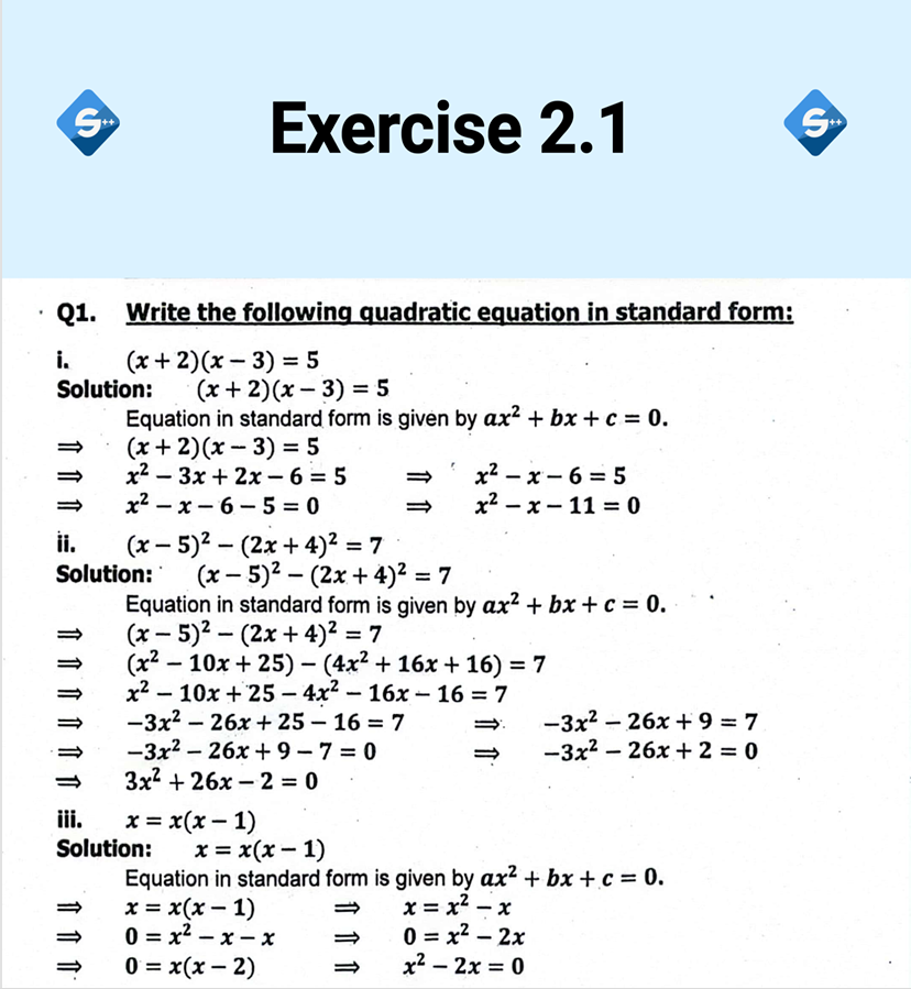 Chapter 2 of Class 10 Mathematics focuses on Quadratic Equations, and Exercise